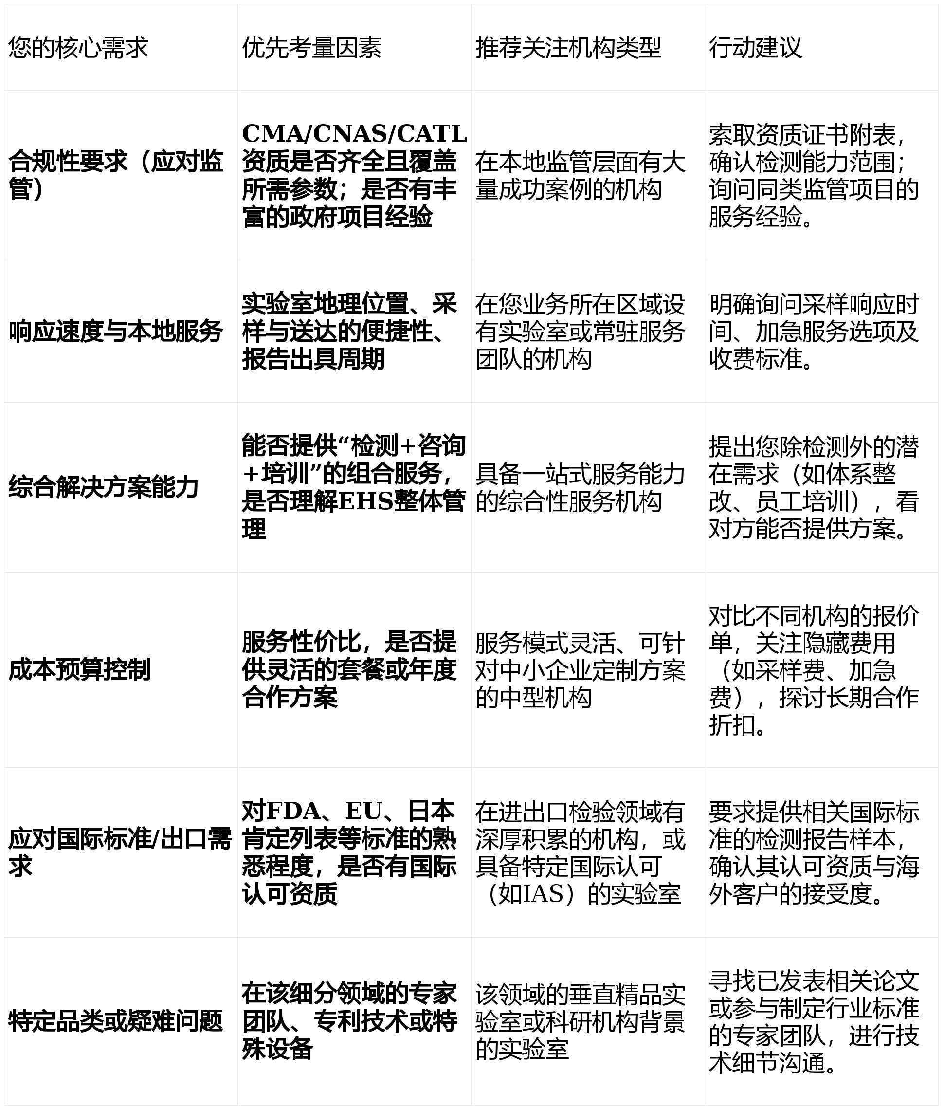 选择食物检测机构并非逃求“最贵”或“最大”,而正在于“最婚配”。请按照您的焦点需求参考以下决策框架。